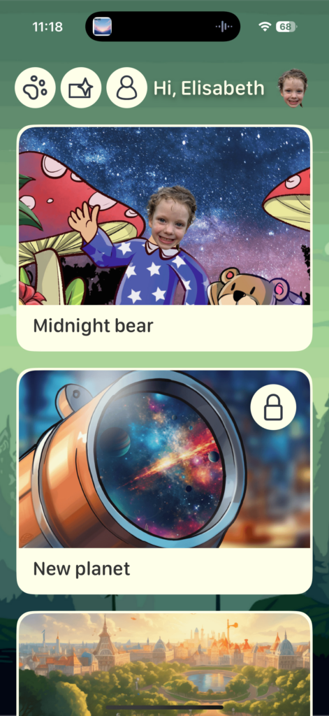 - Smart camera onboarding — Parents capture seven different poses of their child (smiling, laughing, sleeping, silly face, and more), which are then used throughout the story library to bring characters to life.